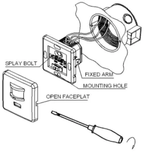 3.If you want to install it in quadrate connection box, penetrate the setscrew into installation hole, aim at the installation hole on connection box, then tighten the screw; if you want to install it in circular one, you can use the same way as the quadrate, also adjust the sensor's position, tighten the setscrew on surface, then the fixing arm will open automatically, fasten