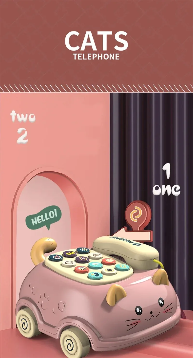 /Baby 3-in-1 Musical Phone Toys Toddler Interactive Learning Toy with Lights Cat Telephone Story Early Education Montessori Gift